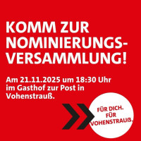 Die SPD Vohenstrauß trifft sich am Freitag, den 21.11.2025 um 18:30 im Gasthof zur Post in Vohenstrauß zur Nominierungsversammlung. Sei dabei wenn wir unsere Kandidatinnen und Kandidaten für Rathaussessel und Stadtrat aufstellen.